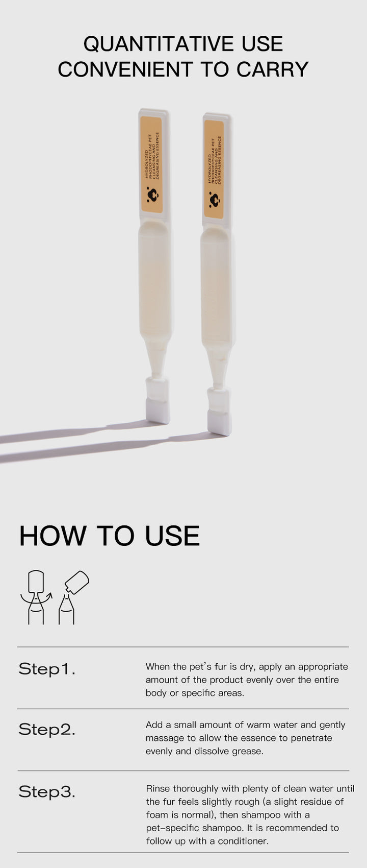 This no-rinse pre-wash essence uses French red algae extract and over 10 nourishing plant oils to dissolve stubborn oil, clean clogged pores, and refresh greasy tails. No emulsifying needed—just apply, massage, and rinse. Gentle, non-irritating formula safe for both cats and dogs.